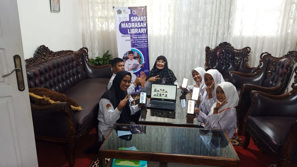 Kepala MTsN 2 Tanah Datar, Ibu Aslinda, M.Pd, menyampaikan bahwa kegiatan ini merupakan langkah penting dalam menyiapkan peserta didik menghadapi era digital. “Dengan adanya aplikasi Smart Madrasah Library, kami ingin memastikan bahwa peseta didik tidak hanya terbiasa dengan buku fisik, tetapi juga mampu memanfaatkan sumber belajar digital. Ini sejalan dengan visi kami untuk menciptakan generasi yang melek teknologi dan literasi,” ujarnya.