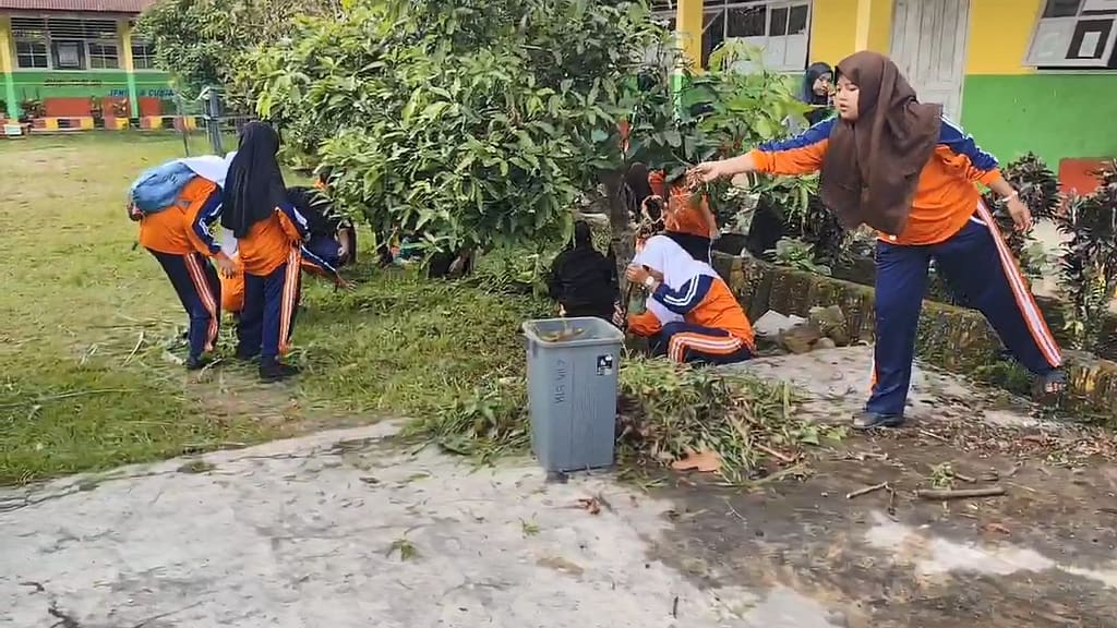 Keluarga Besar MTsN 2 Tanah Datar Melaksanakan Kegiatan Gotong Royong Membersihkan Lingkungan Madrasah