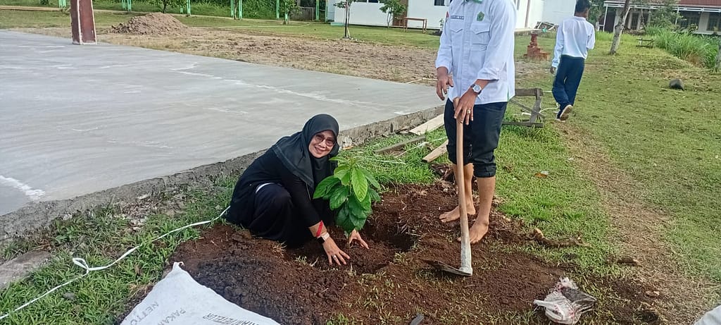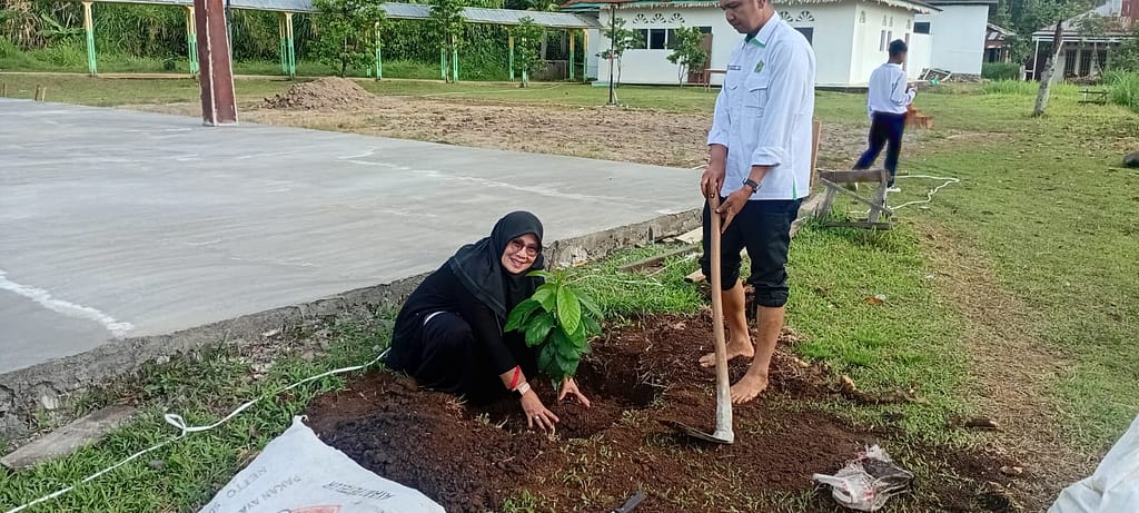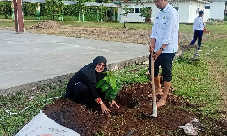 Menuju Madrasah Adiwiyata: MTsN 2 Tanah Datar Laksanakan Penanaman Pohon Pokat