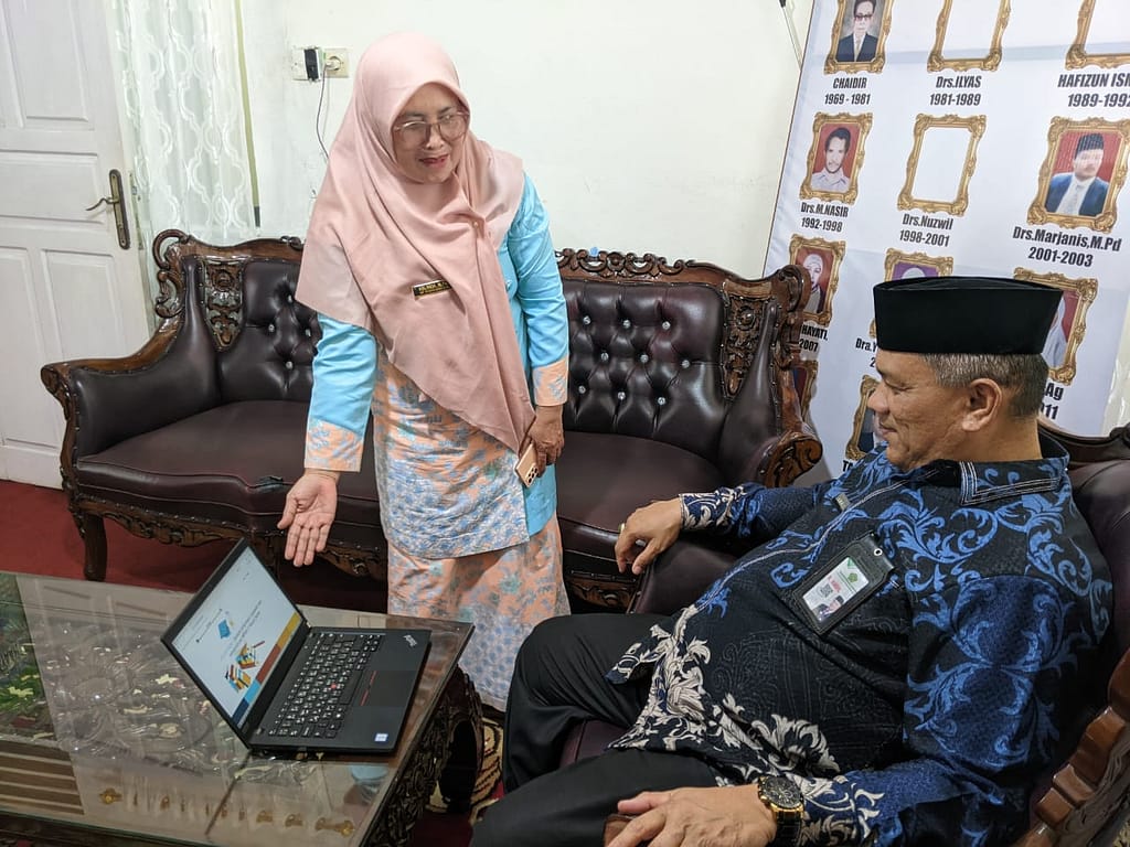 Acara yang digelar di ruangan kepala madrasah yang dihadiri oleh Bapak Kemenag, Bapak Kasi PD Pontren dan tim, serta Ibu Kepala Madrasah yang didamping oleh Bapak KAUR. Dalam sambutannya, Bapak H. Amril menyampaikan apresiasi atas Inovasi digital yang dilakukan oleh pihak madrasah dalam rangka meningkatkan efektivitas dan transparansi layanan administrasi.
