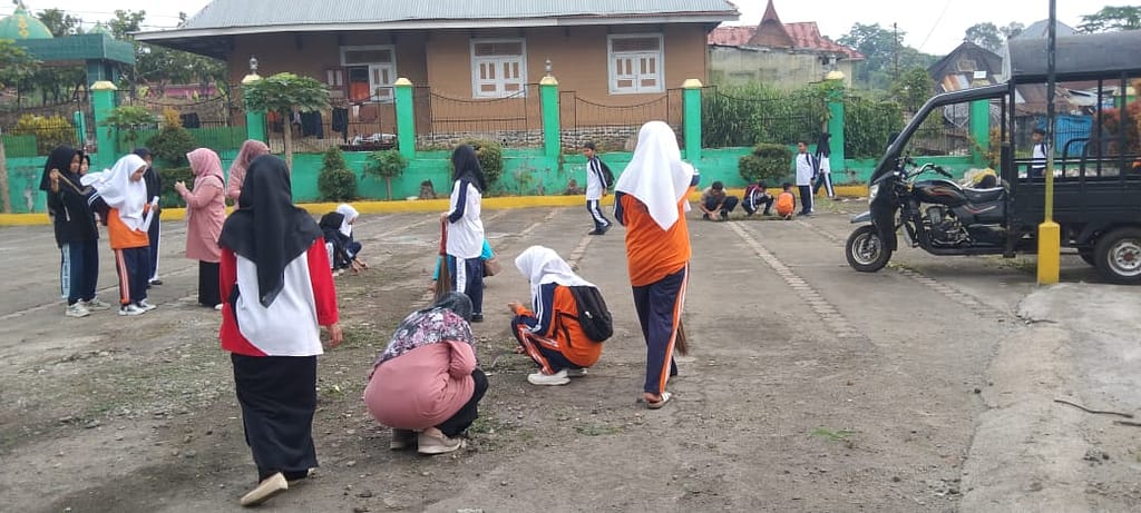 Kepala MTsN 2 Tanah Datar, Ibu Aslinda, M.Pd, yang saat ini tengah menempuh pendidikan doktoral (S3), menyampaikan bahwa kegiatan ini bukan sekadar aksi bersih-bersih, tetapi juga bagian dari pendidikan karakter dan pembiasaan nilai-nilai keislaman.