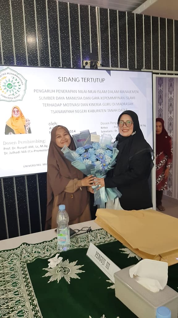 Dalam kesempatan tersebut, Ibu Dr. Aslinda, M.Pd menyampaikan rasa syukur yang mendalam atas kelancaran proses akademik yang telah ia lalui. Ia menegaskan bahwa dukungan dari berbagai pihak menjadi kunci utama dalam perjalanan panjang menempuh studi ini. Sebagai penutup, Ibu Dr. Aslinda, M.Pd mengungkapkan semua capaian ini tak lepas dari binaan Kepala Kantor Kementerian Agama (Kakankemenag) Kabupaten Tanah Datar, Bapak H. Amril, S.Ag., M.M. Dukungan dan bimbingan dari pimpinan instansi tersebut diakui menjadi kekuatan moral yang luar biasa bagi beliau dalam menuntaskan tanggung jawab akademis di tengah kesibukan menjalankan tugas negara.